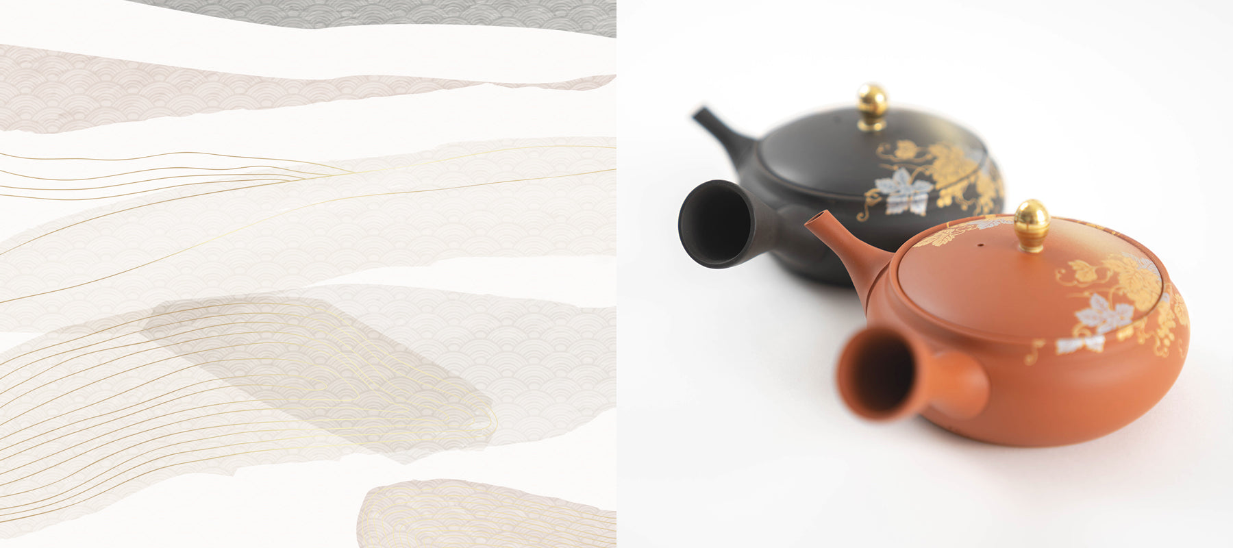 This Japanese teapot set features beautiful mountains made of porcelain.