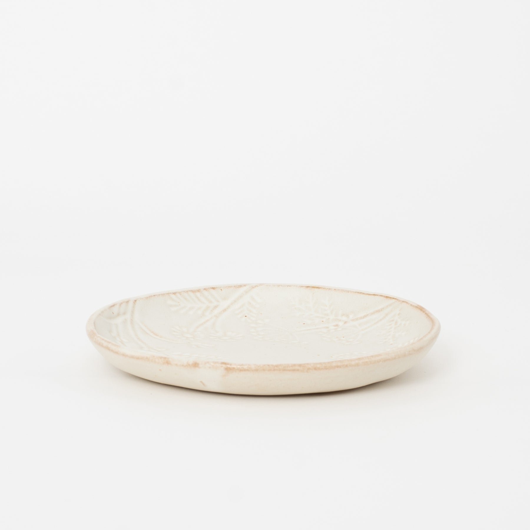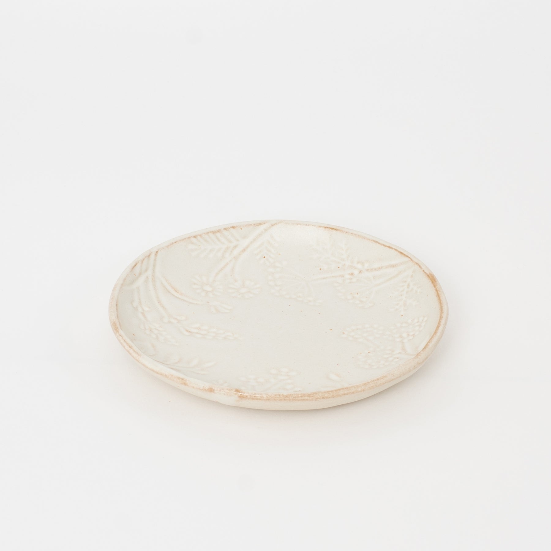Mashiko Yaki small floral plate used as tea saucer and snack plate