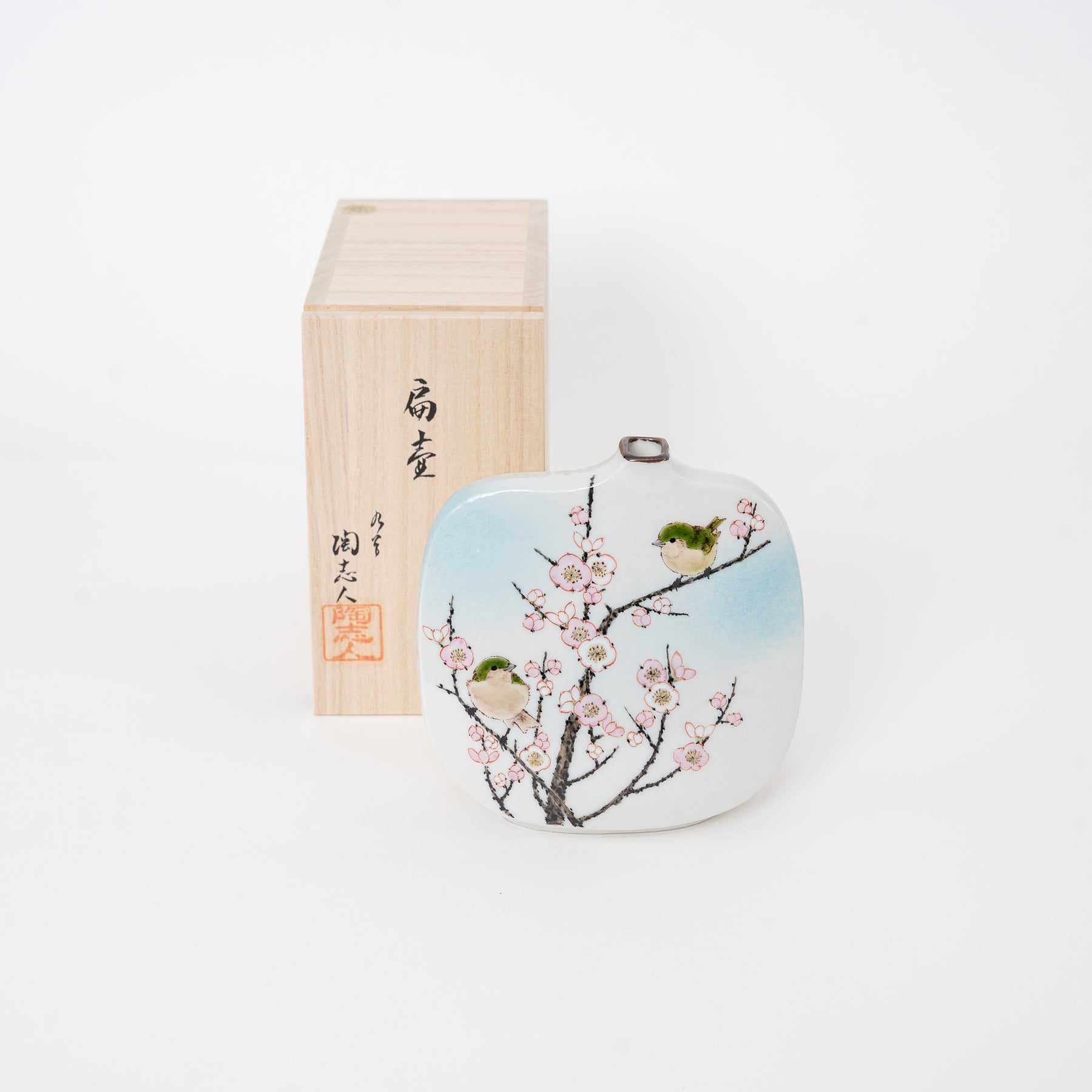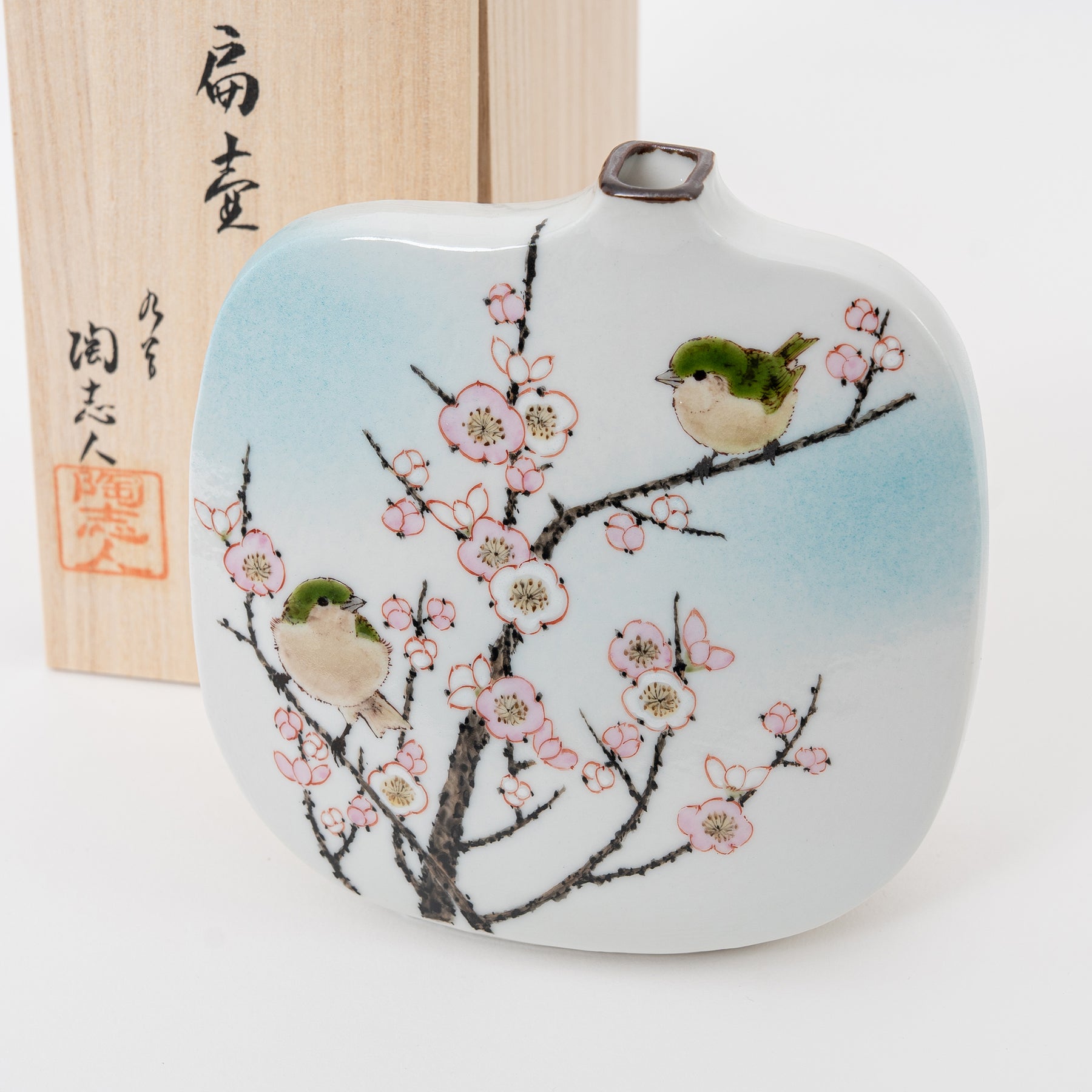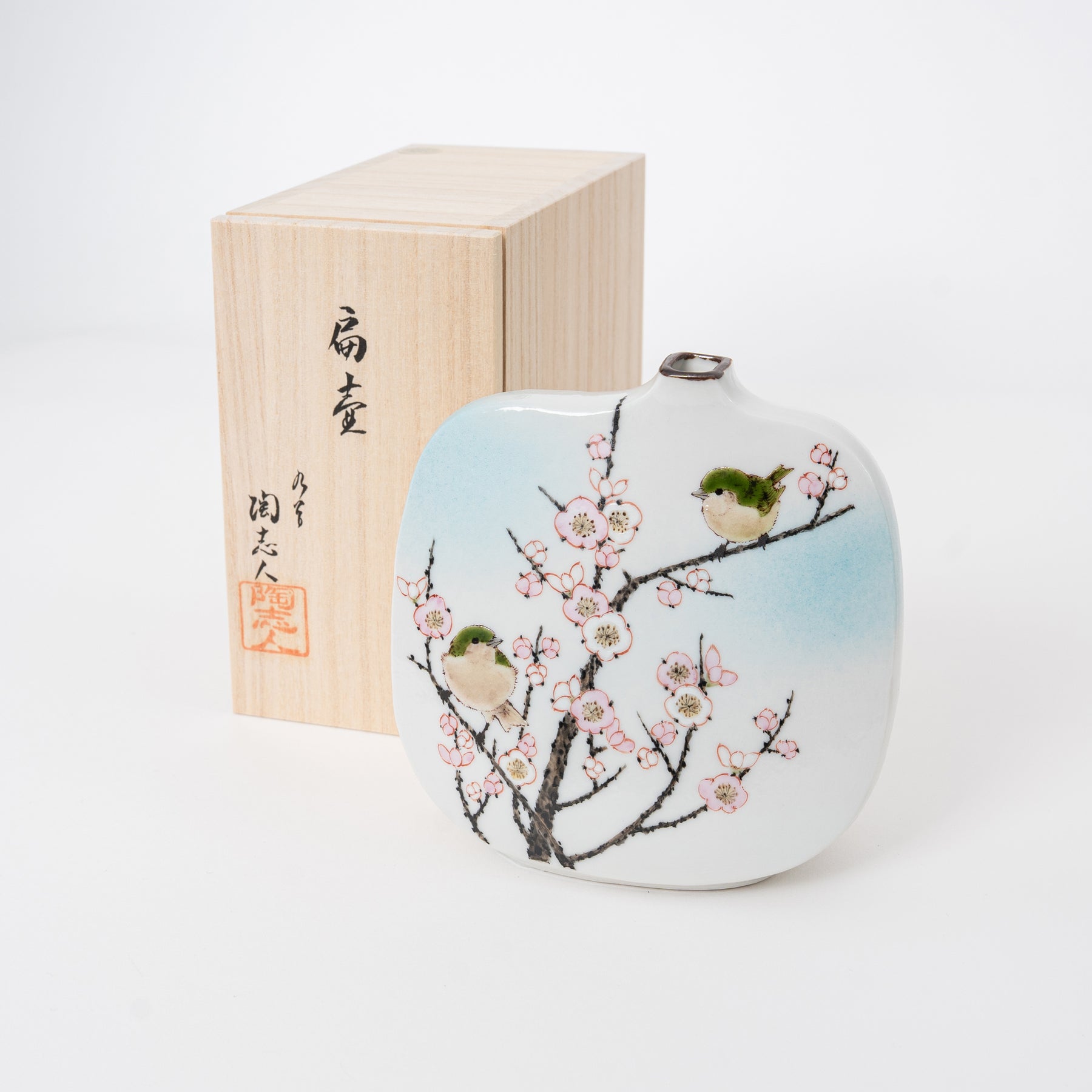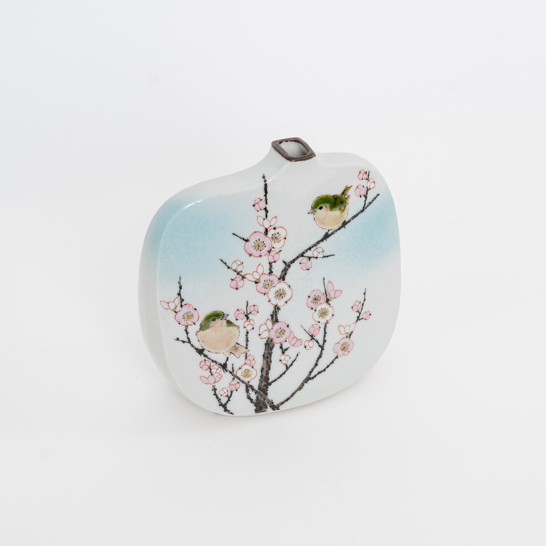 Plum Blossom & Bush Warbler Art Vase — by Nakamura Toshito