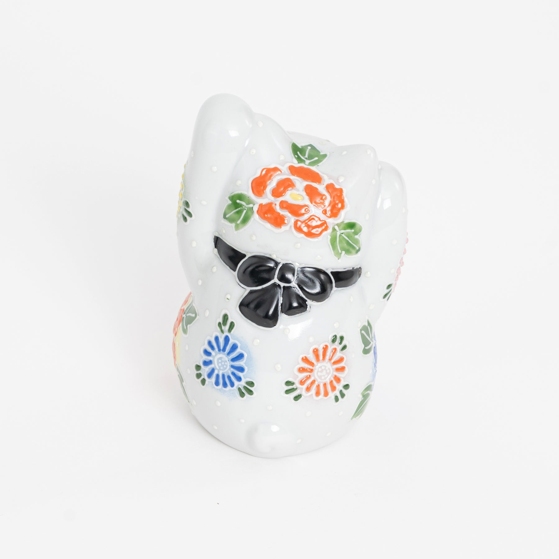 Bring a touch of charm and good fortune into your space with this beautiful Floral Japanese Lucky Cat figurine, handcrafted in Japan using traditional Kutani ware techniques. This elegant maneki neko features delicate hand-painted floral patterns and a glossy ceramic finish, making it both a meaningful symbol and a refined decorative piece.
