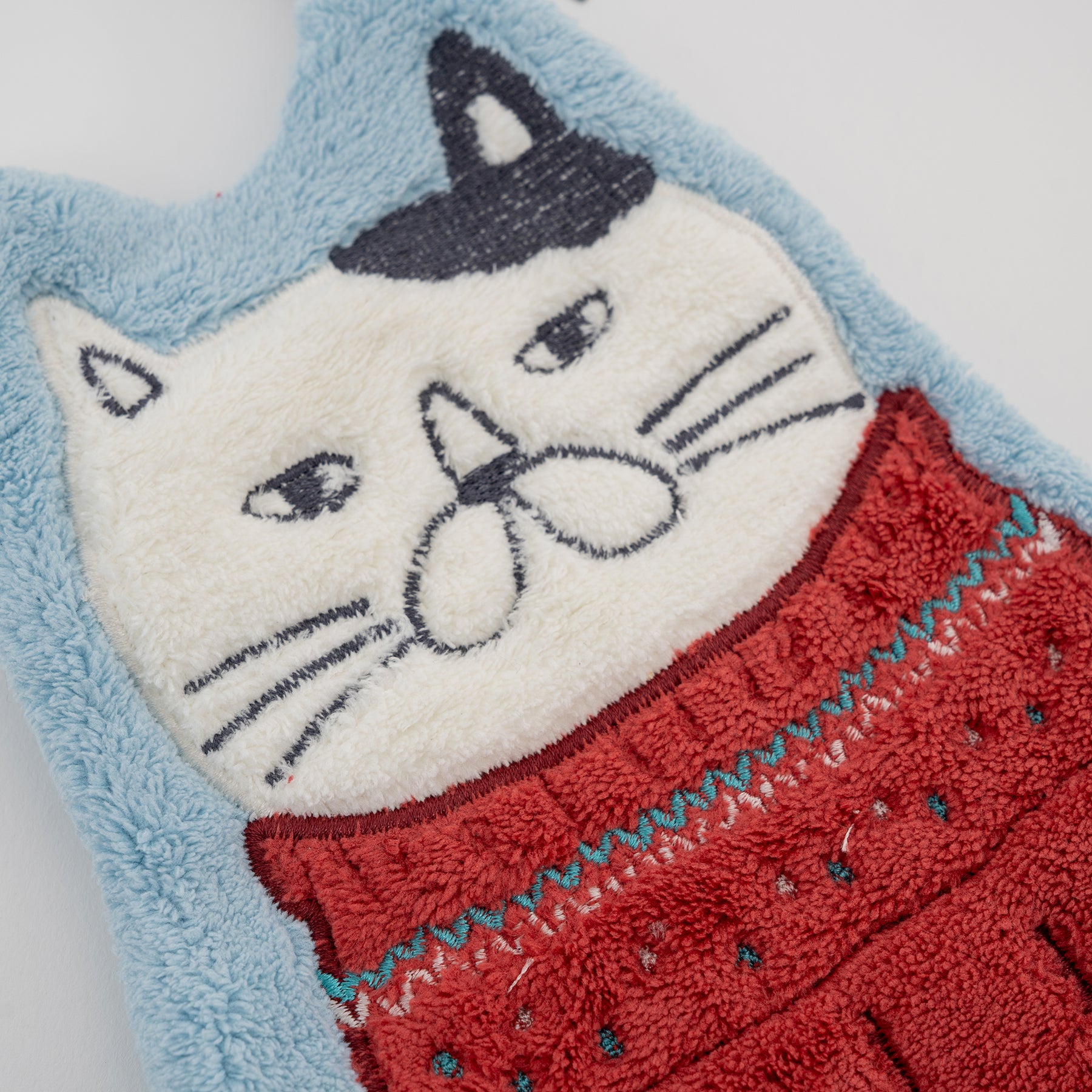 Unlike ordinary hand towels, this piece blends function with decorative charm. The soft microfiber-style terry fabric is absorbent and quick-drying, while the hanging loop makes it easy to place by a sink, hook, or cabinet handle. Each design features richly stitched character artwork, from clever cats in sweaters to Pauro the French bulldog, making even a simple daily routine feel more personal and playful.