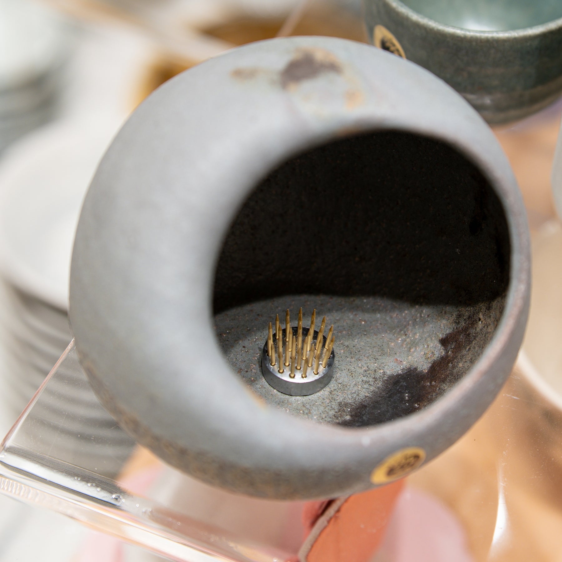 The vase’s intentional round form and distinctive side opening are perfectly suited for Ikebana (Japanese flower arranging), particularly styles that emphasize balance and line. It encourages the use of branches, dried grasses, or a single, thoughtfully placed bloom.